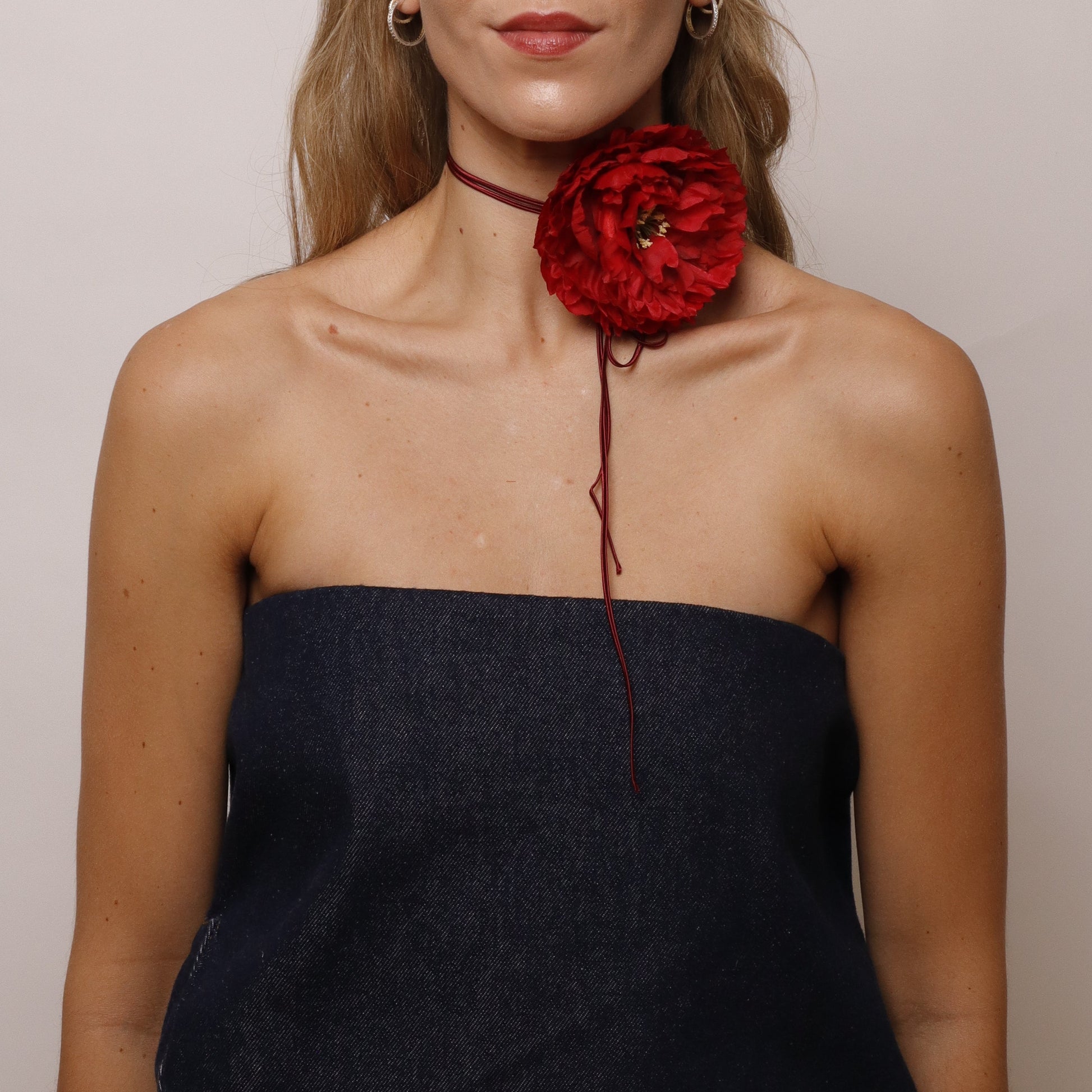Handmade multifunctional floral cord with a red peony and a silk cord of your choice.