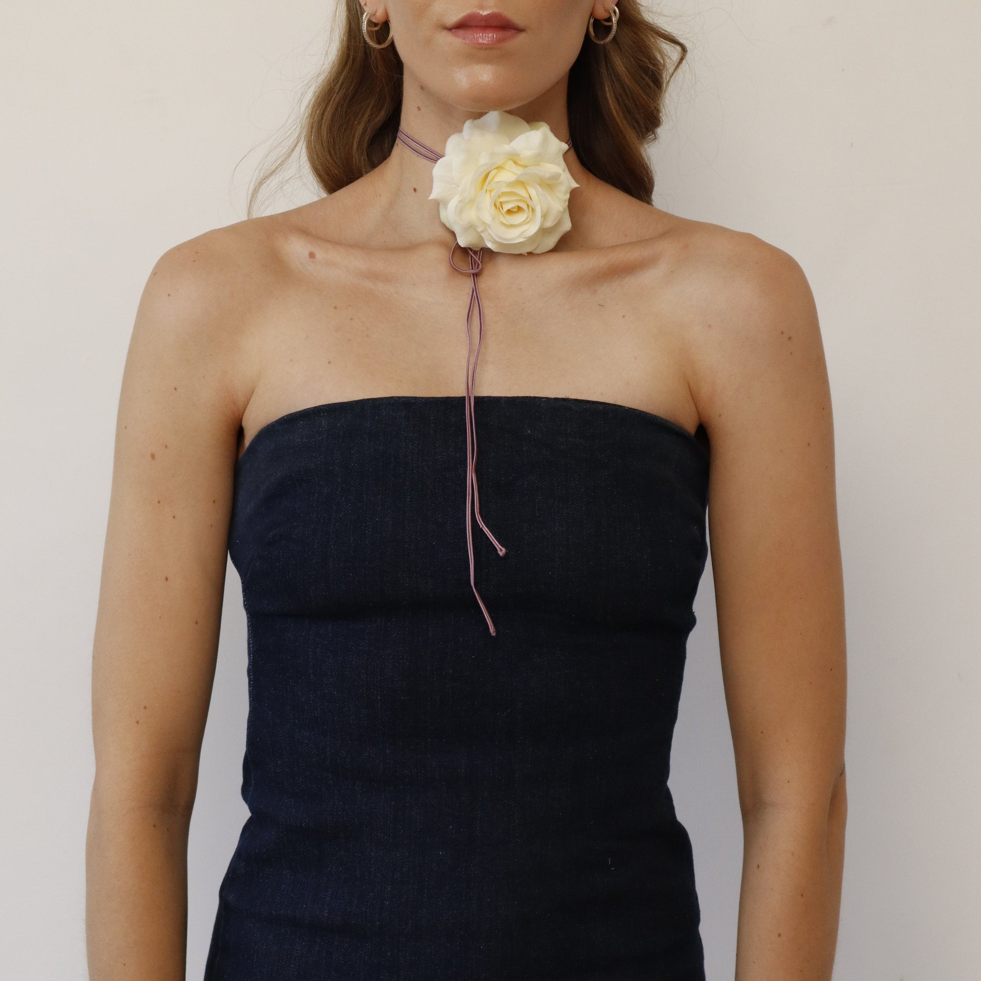 Handmade multifunctional floral cord with a ivory rose and a silk cord of your choice.