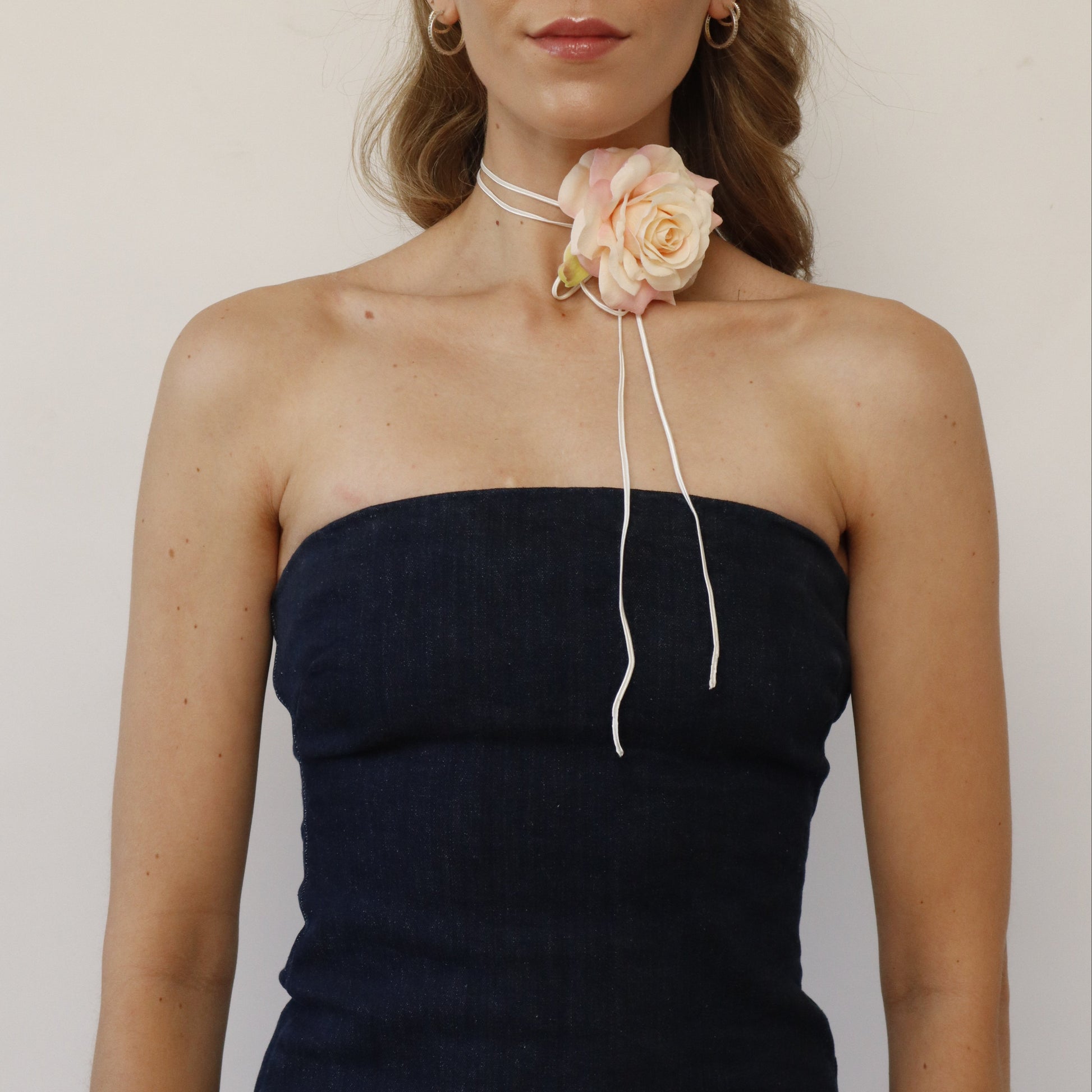 Handmade multifunctional floral cord with a pink rose and a silk cord of your choice.