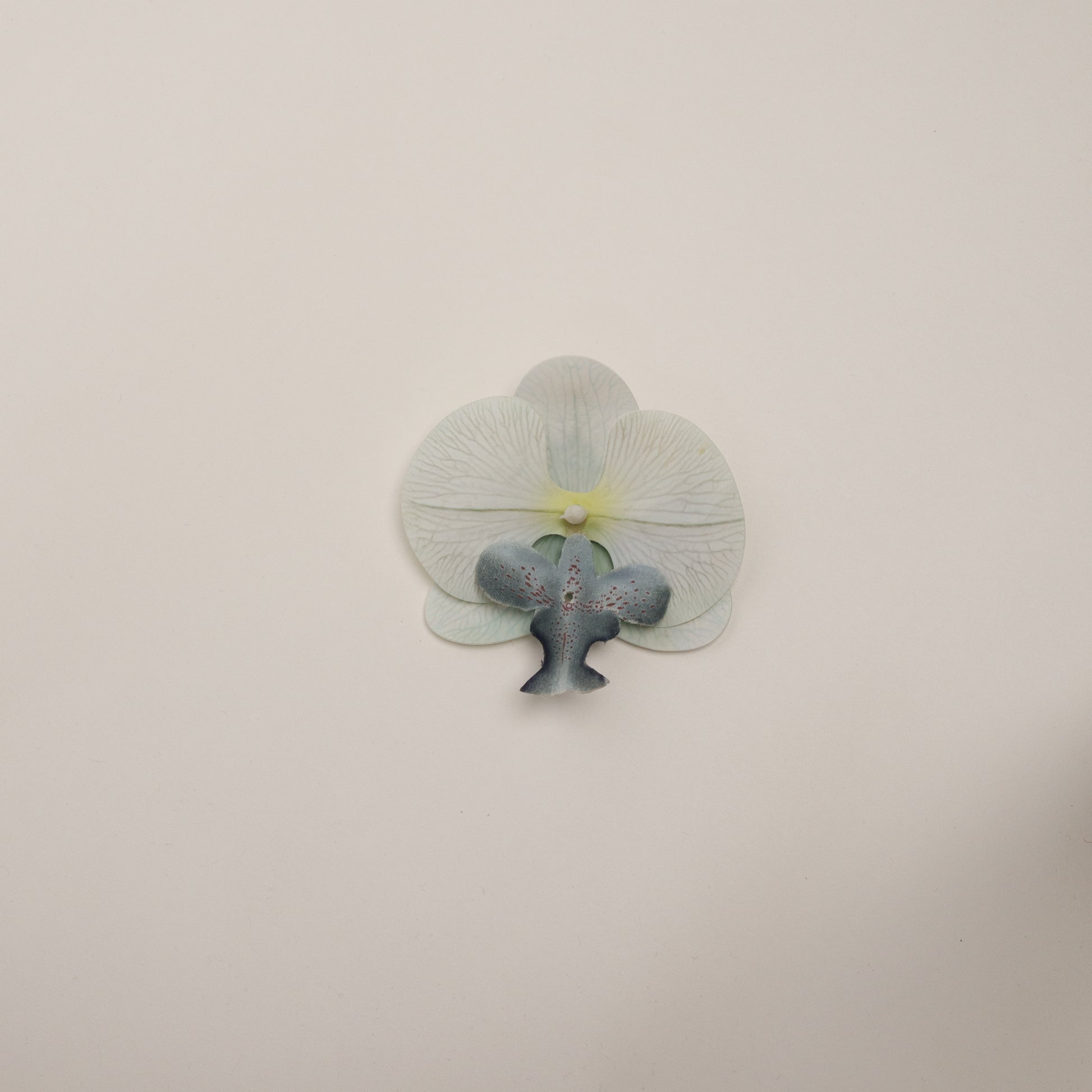 Handmade multifunctional floral cord with a sky blue orchid and a silk cord of your choice.
